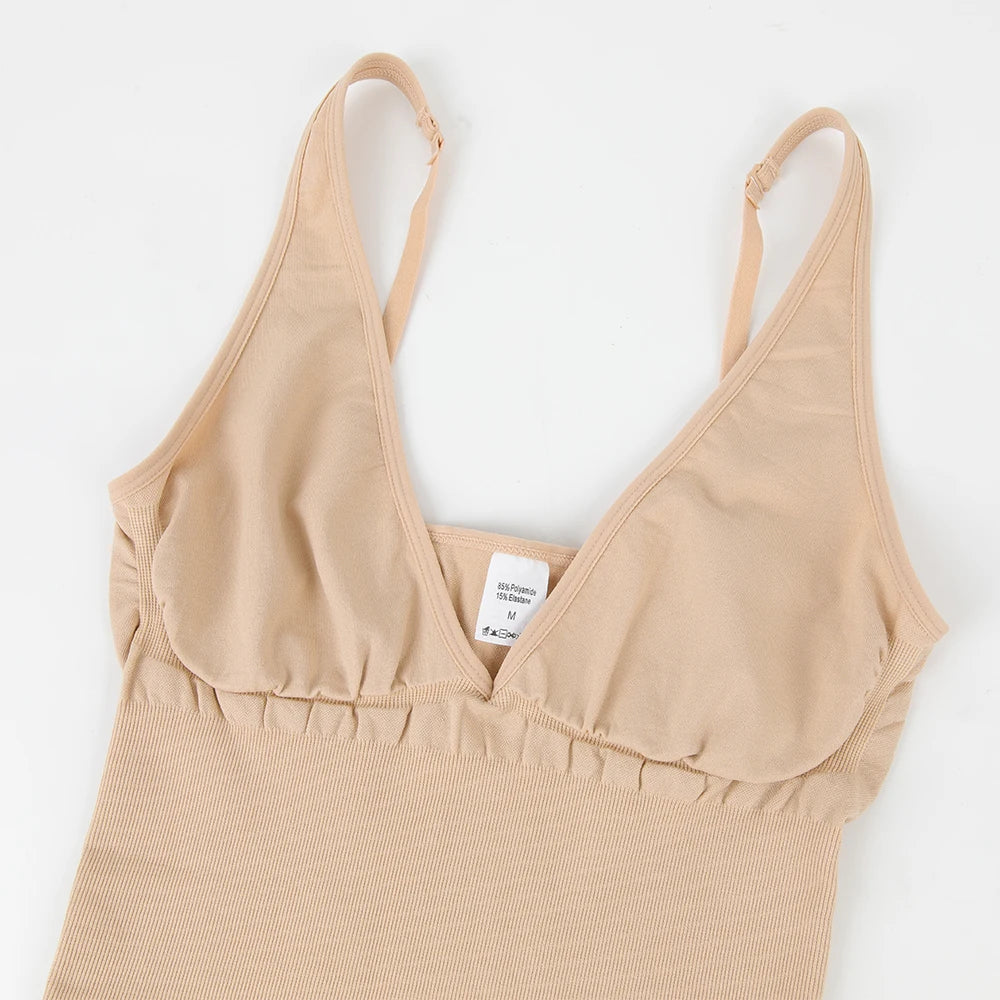 Erleben Sie perfekte Formen und vielseitigen Stil mit unserem nahtlosen Damen-Body! Dieser Body kombiniert Bauchkontrolle, figurformende Eigenschaften und ein modernes, rückenfreies Design für eine atemberaubende Silhouette. Der tiefe V-Ausschnitt und der elegante Neckholder-Schnitt sorgen für einen sexy und zugleich stilvollen Look.